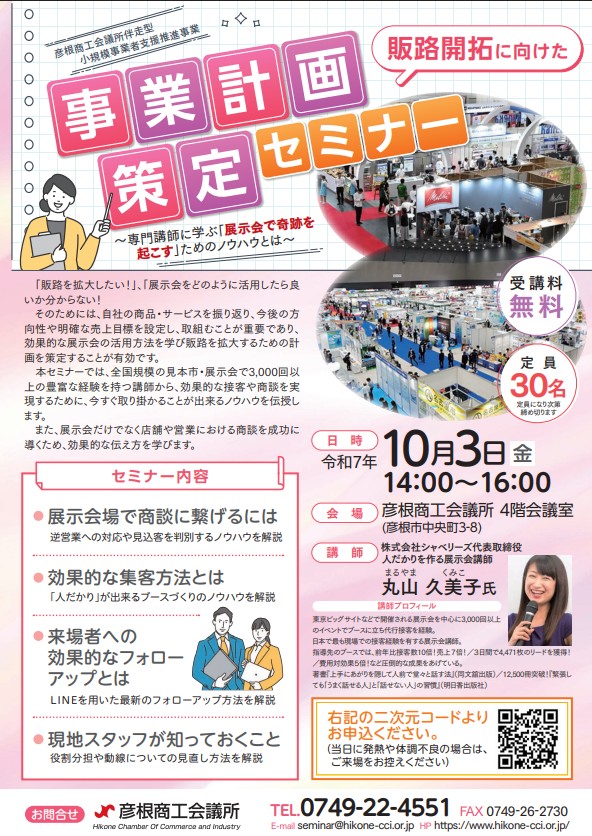 【彦根商工会議所伴走型小規模事業者支援推進事業】販路開拓に向けた 事業計画策定セミナー